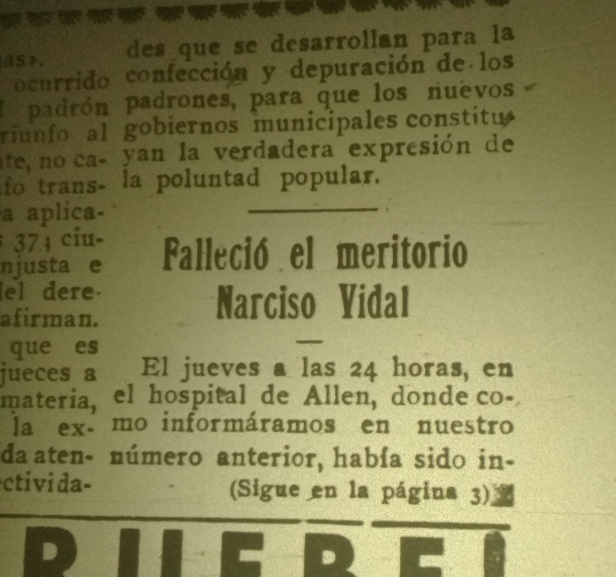 Los esfuerzos por salvarlo no fueron suficientes y Vidal murió en el Hospital Regional de Allen, inaugurado siete años antes. Sus restos fueron inhumados en el cementerio de Cipolletti. “Solo, sin arma, sin experiencia, con un caballo viejo, así nomás con su coraje”, describió a Narciso el libro histórico de Hortensia Zamboni.