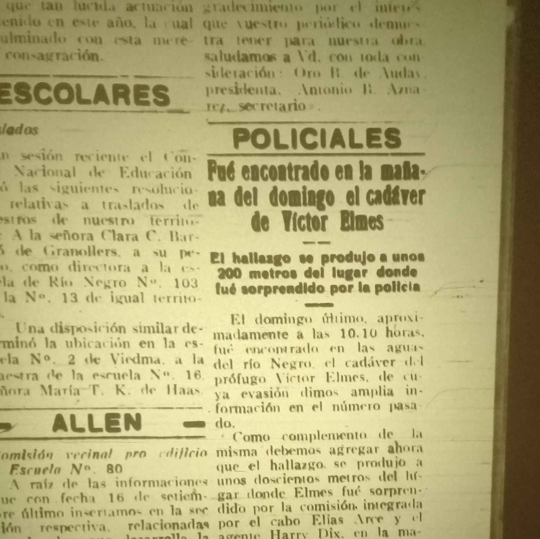 Pocos años agrupan, según los registros, el apogeo y desenlace de la intensa vida de Víctor Elmes. Fue uno de los sujetos más buscados por la policía entre las décadas del ‘20 y el ‘30, cuando Río Negro era sólo territorio. En 1937 informaron que murió de varios disparos. Pero otros dijeron que partió mucho después, camuflado por años como un empleado más, en Roca.