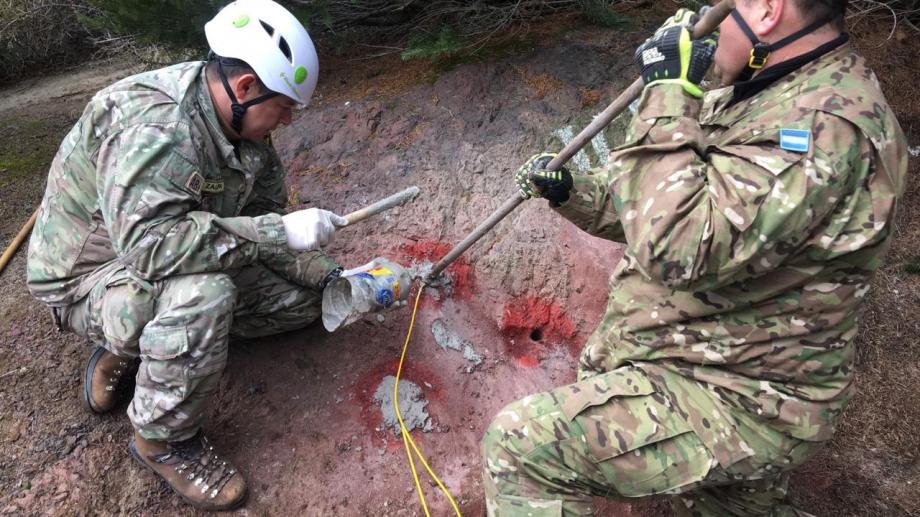 Minutos después de las 18.30 del viernes, se produjo la primera microdetonación en el bloque de rocas más grande e inestable de la ladera de la montaña ubicada a la altura de Brazo Huemul.