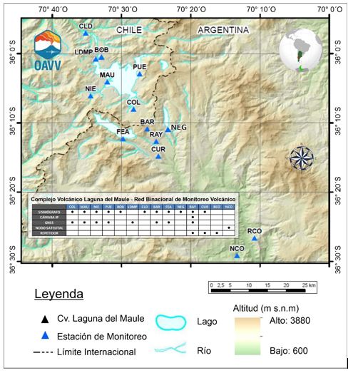 Pasadas las 17:20 de ayer el último equipo con personal operativo culminó con las tareas de instalación y puesta a punto de los equipos montados en puntos estratégicos en Laguna del Maule, que se posiciona entre los volcanes activos en el tercer puesto del ranking de Riesgo Relativo elaborado por el Servicio Geológico Minero Argentino (Segemar) y que además se encuentra en alerta técnica amarilla desde junio de 2020 por el aumento sostenido de su actividad sísmica.