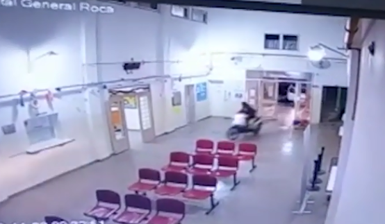 Video: escapaba de la policía y entró a bordo de una moto al hospital de Roca