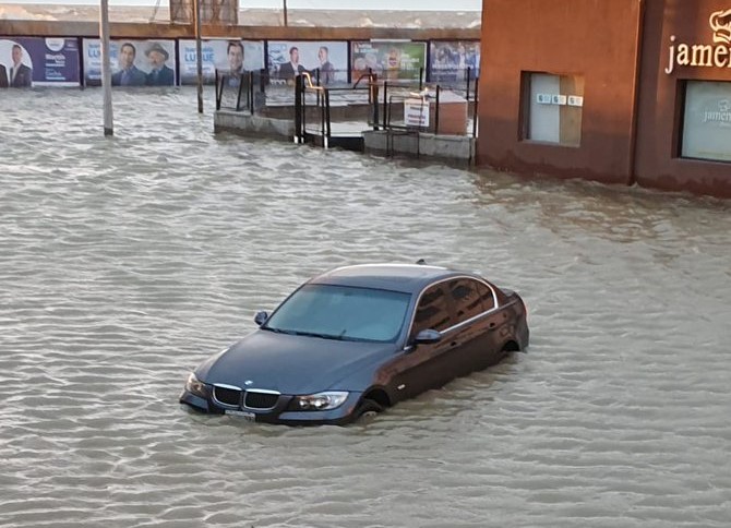 La marejada inundó calles del centro y zonas aledañas de Comodoro.