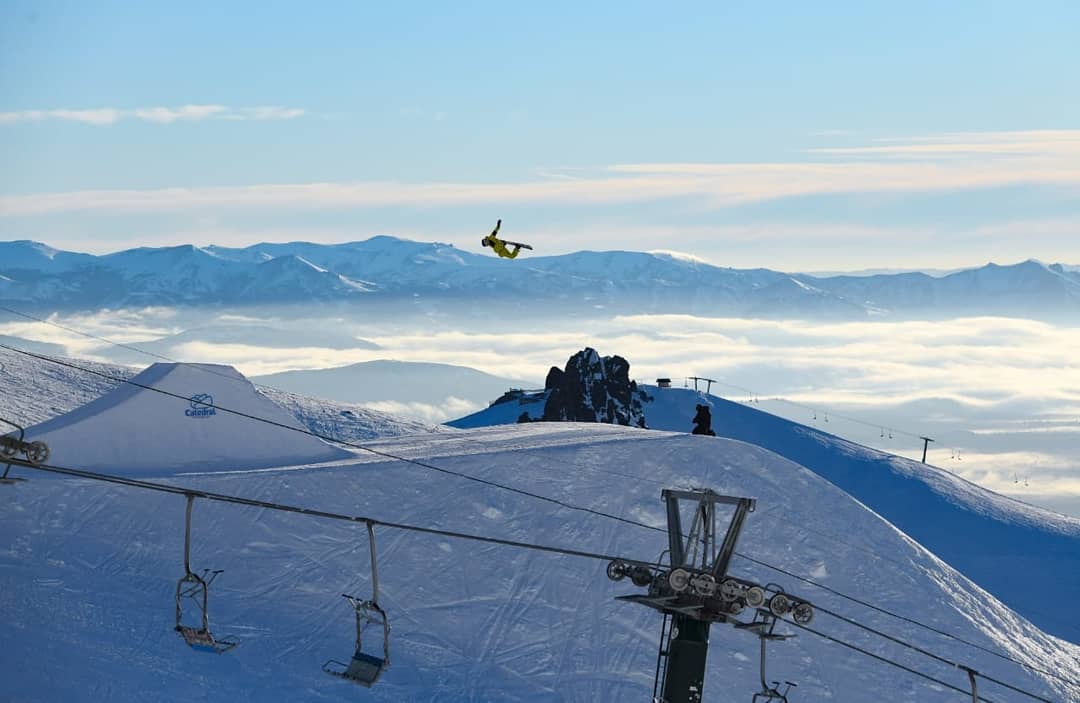 Mirá cómo entrena Matias Schmitt, del Equipo Argentino de Freestyle, en el salto Big Air del Catedral Snow Park