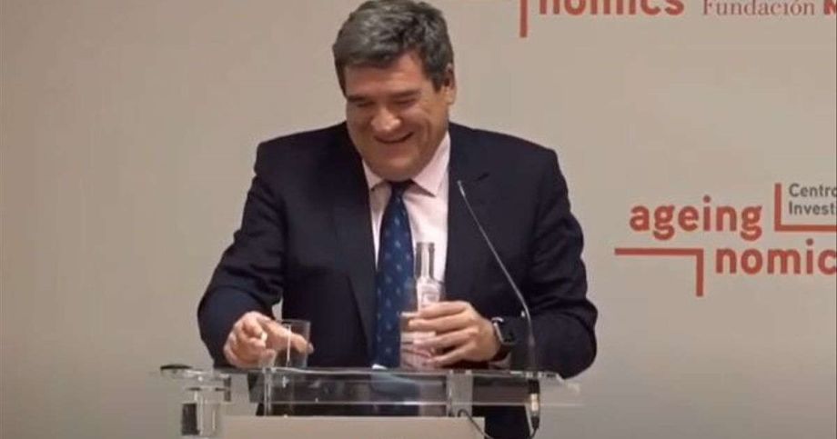 El protagonista del hecho fue José Luis Escrivá, titular de la cartera española de Desarrollo Social, quien confundió un hueco del atril en el que estaba exponiendo con un vaso. Y lo llenó de agua.