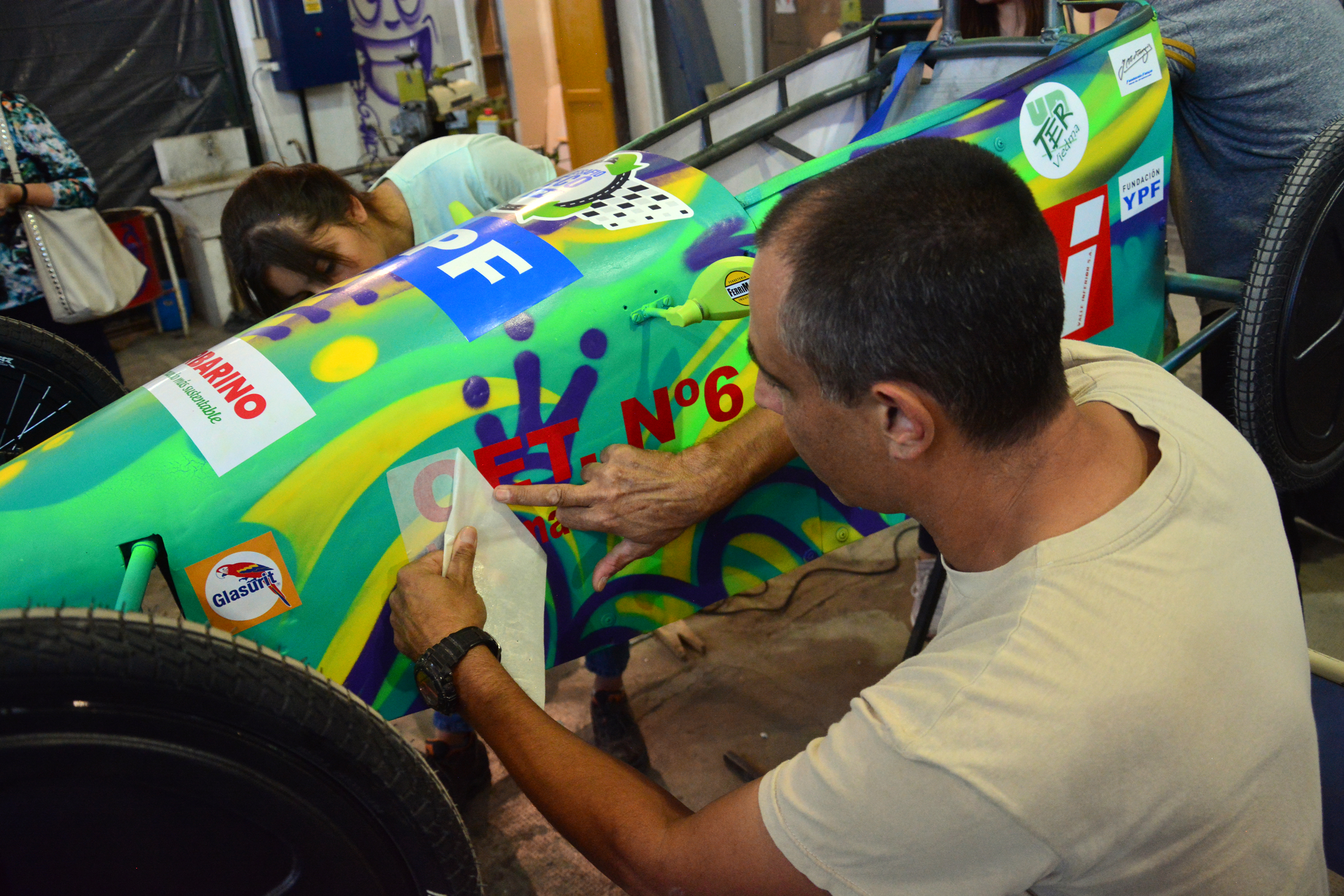 Por caso, al eje trasero se le colocaron chavetas para que no tenga problemas en la transmisión, y se colocaron frenos a disco que se emplean en bicicletas. Si bien se utilizó material de fibra de vidrio para el cockpit (puesto del conductor en el coche), su peso se mantuvo en el promedio que fija el reglamento, es decir unos 160 kilos.