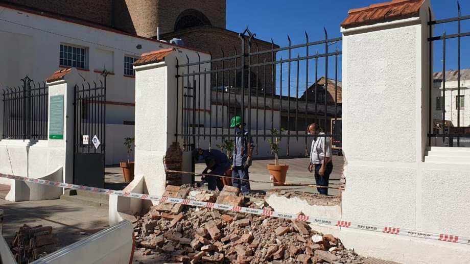 Se trabaja además en la puesta en valor del muro del Patio Salesiano, sobre la calle Irigoyen. Las tareas consisten en la demolición del paredón hasta 0.45céntimetros del suelo y la reubicación de las rejas y el portón, de modo de generar apertura visual de la plaza con su entorno. La terminación del trabajo se completará con el revoque del muro demolido y la pintura de la fachada completa, incluida la reja.
