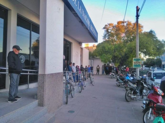 El mayor movimiento se registra en el Banco Nación donde se registraba una cola de casi dos cuadras antes de la apertura para la atención al público que es de 8 a 13.