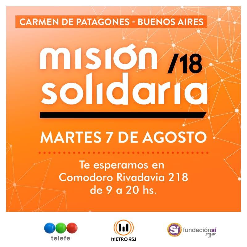 A nivel nacional se desarrollará una jornada solidaria entre la Fundación SI y Radio Metro. El martes 7 de agosto en todo el país se recibirán donaciones destinadas a centros comunitarios de distintos puntos de nuestro país y la Fundación SI de Viedma formará parte en representación de toda la Comarca.