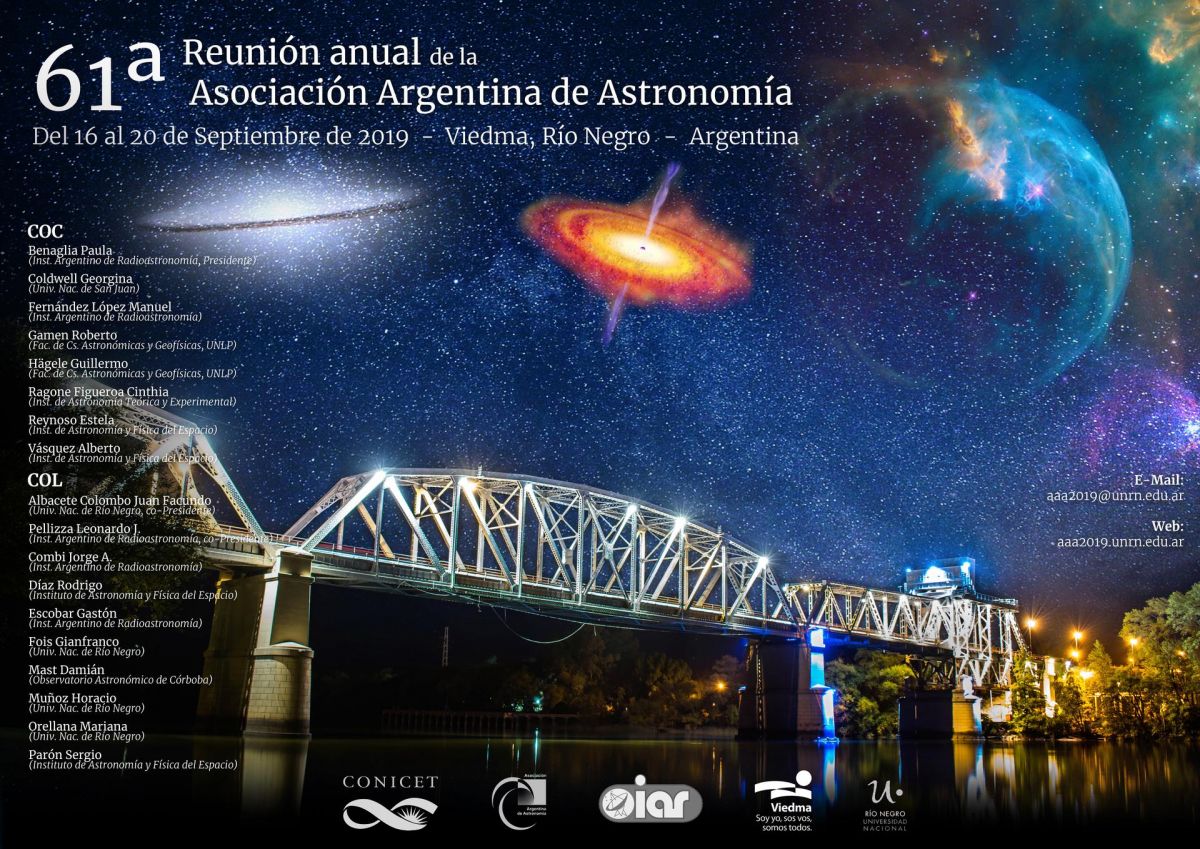 La 61ᴀ. Reunión de la Asociación de la Argentina de Astronomía es organizada y llevada adelante a través del Consejo Nacional de Investigaciones Científicas y Técnicas (CONICET), la Asociación Argentina de Astronomía, el Instituto Argentino de Radioastronomía (IAR), la Municipalidad de Viedma y la Universidad Nacional de Río Negro (UNRN)