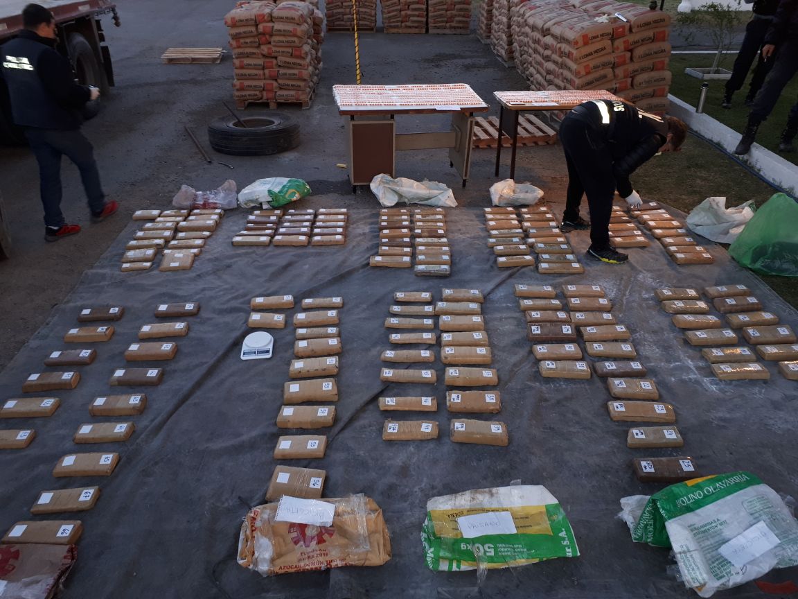 Secuestran más de 120 kilos de droga oculta en bolsas de cemento