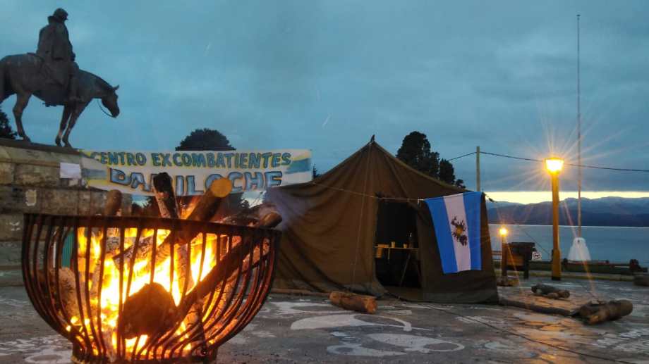 Los veteranos de Malvinas encabezaron una nueva vigilia en el Centro Cívico de Bariloche.