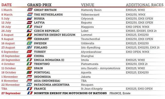 La pandemia de Coronavirus obligó a una reprogramación y la FIM confirmó el nuevo programa que tendrá el Mundial de motocross, para MXGP yMX2.