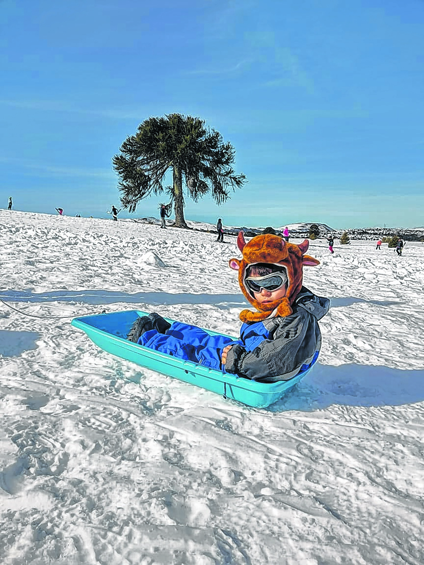 Ciro también asegura que hay una opción para cada gusto. Si algún integrante de la familia no se anima a esquiar puede subir en moto de nieve al cráter del volcán. Van hasta la laguna que siempre está congelada y de ahí hay lindas vistas de los lagos. También se pueden hacer caminatas con raquetas hasta la base del volcán.