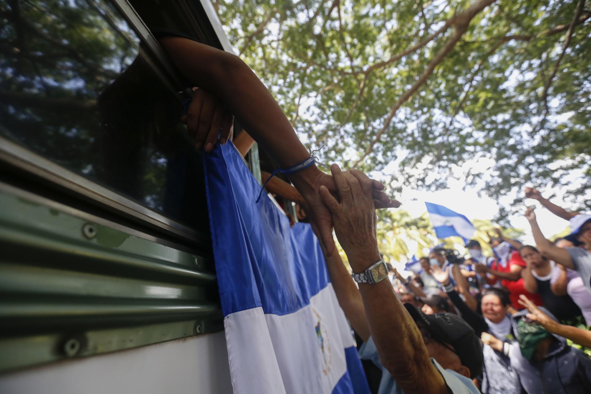 Aquí están los héroes de Nicaragua”, gritó una mujer en las afueras del templo, donde se vivieron escenas conmovedoras en el reencuentro de los jóvenes con sus familias. Muchos iban encapuchados por temor a represalias.