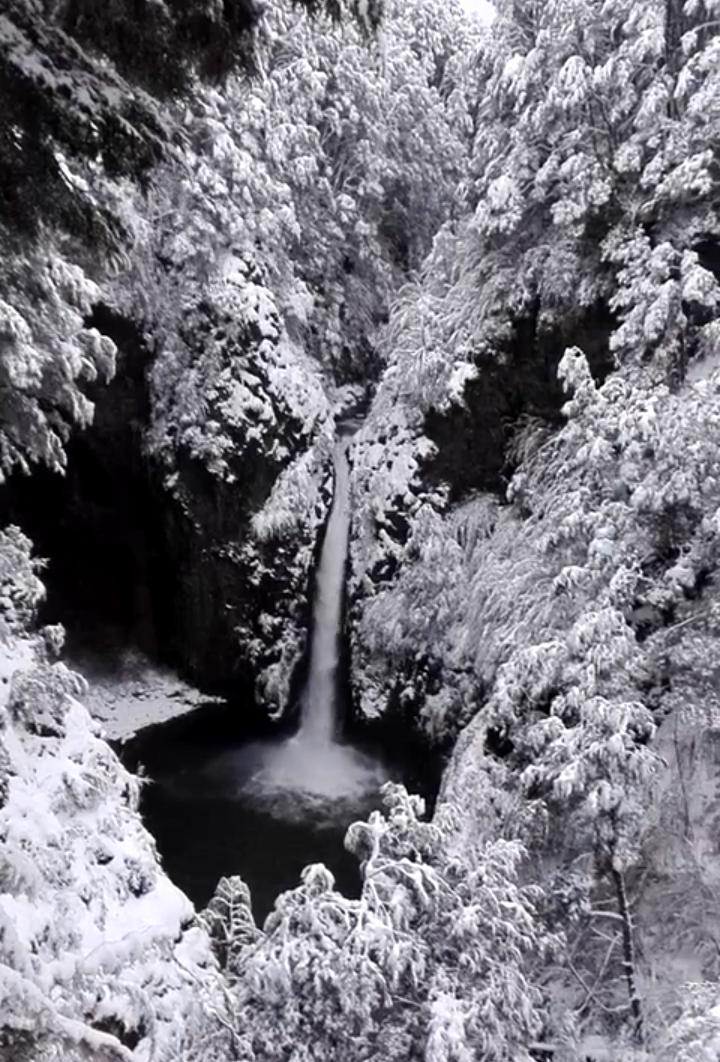 Esta maravilla fue filmada por María Laura Mazza en la nevada del sábado 27 de junio. Es la cascada del río Bonito en el camino al cerro Bayo, Villa la Angostura.