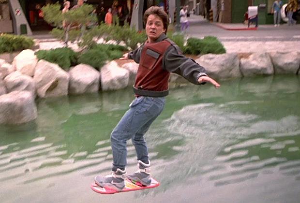 Algunas predicciones tecnológicas de la segunda parte de “Volver al futuro” ocurrieron u ocurren en este presente o se acercan bastante, como las comunicaciones a través de video (Skype, por caso) o mini pantallas o video juegos sin manos, o la posibilidad de ver varios canales de TV al mismo tiempo. ¡Si hasta una compañía en California está trabajando en una patineta voladora! Sería grandioso. Está bien: no hay teléfonos celulares en la película. No hay Internet. En cambio, hay cabinas telefónicas con asientos. No parecen tener internet (al menos, no como la conocemos en la actualidad). Aunque los niños McFly están usando lentes JVC (un sustituto interesante de los Google Glass), los dispositivos están conectados a una línea telefónica compartida familiar (Papá, es para ti, se queja la hija adolescente de Marty cuando suena el teléfono y ella se pone sus lentes para ver quién llama). Tampoco vemos a los chicos McFly llevando estas cosas en el mundo, lo que significa que no son realmente dispositivos móviles. Doc Brown, sin embargo, lleva sus lentes futuristas mientras está fuera de casa. La televisión de pantalla plana en casa de los McFly hoy existe (sólo que se conecta a Wi Fi) y la película incluye tecnología de reconocimiento facial que se ve tal como se usa hoy. Se aceptan donaciones desde dispositivos digitales y el escaneo de huellas digitales para las cerraduras de las puertas se extendieron. Hasta los cordones que se abrochan solos están cerca: por estos días, las zapatillas diseñadas exclusivamente por Tinker Hatfield, de Nike, para que las usara Marty McFly, podrán salir al mercado. Como aseguraron desde la empresa, las Nike MAG con los llamados “Power Laces” serán lanzadas durante este año. En 2011, la marca lanzó una versión de las zapatillas pero sin los cordones mágicos en una edición limitada que se vendió para beneficio de la Fundación Michael J. Fox, que recauda dinero para investigar sobre el Mal de Parkinson. El rapero Tinie Tempah se compró unas a 37.500 dólares.
