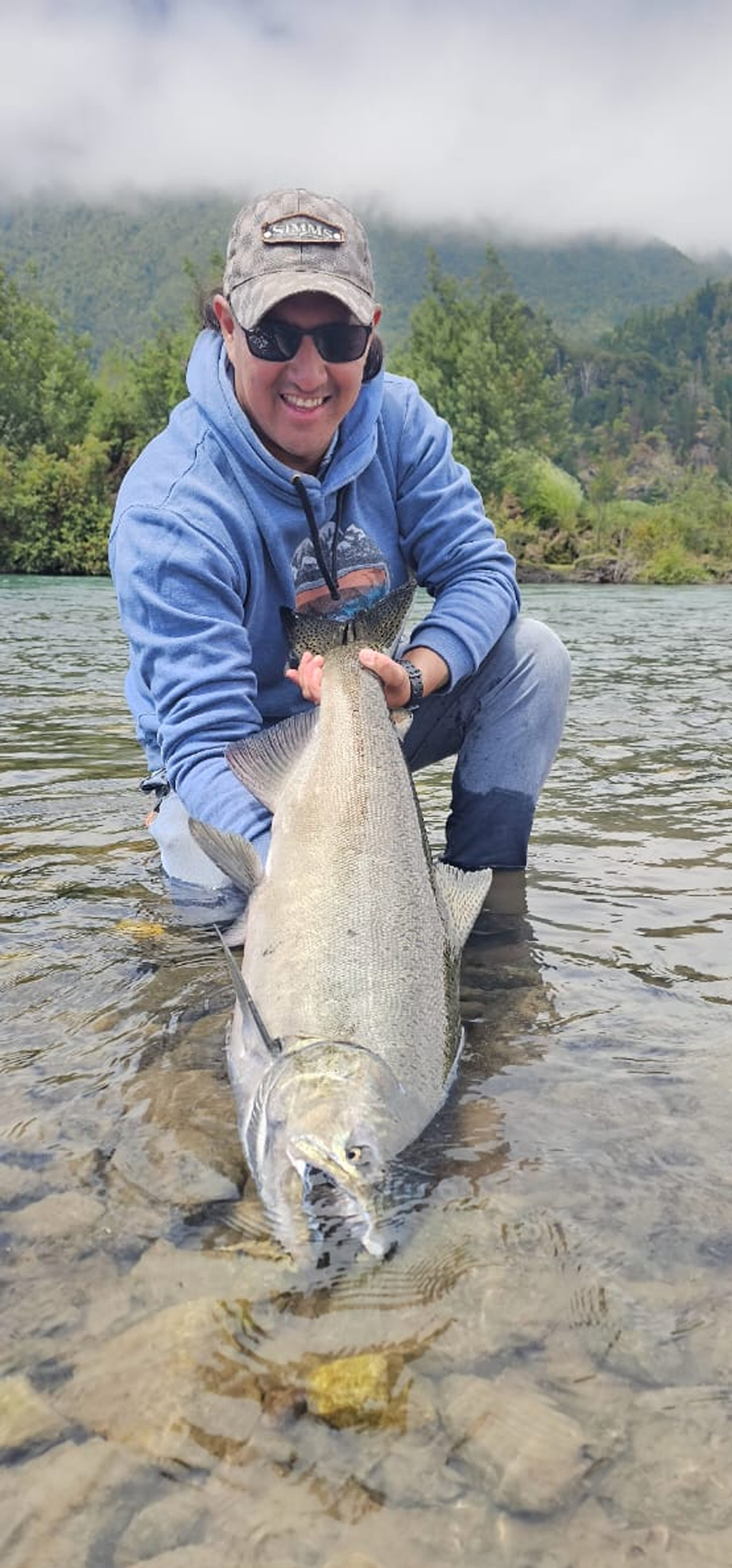 “La experiencia de pescar salmones es única porque vienen desde el Océano Pacífico y suben por el río únicamente a desovar. Es su último viaje, porque una vez que cumplen su ciclo, mueren”, relata Diego, a los pocos días de regresar a Neuquén.