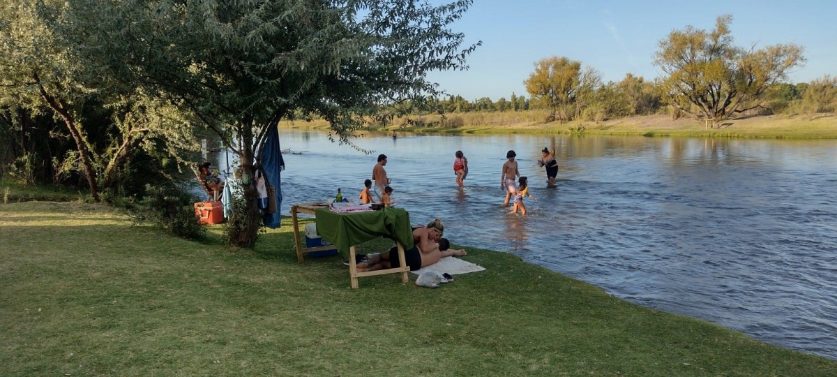 En la orilla del brazo del Río Negro una pata jugaba con sus pichones, mientras conejos blancos y negros saltaban por el césped. Cerca de ellos, algunas personas compartían un mate en la tranquilidad de la tarde. El fin de semana largo, en el Puesto los Hermanos de Paso Córdoba, todos disfrutaban de un día de río, sol y buenas compañías.