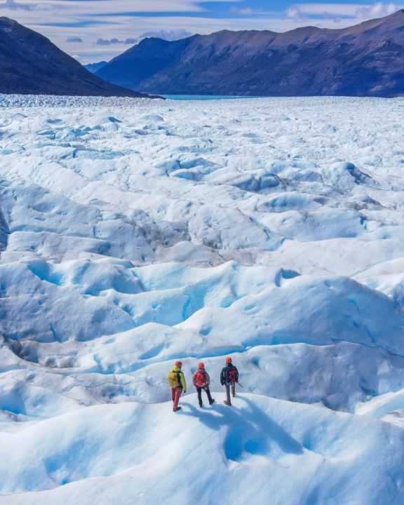 La historia de Hielo y Aventura comenzó hace 35 años, impulsada por tres amigos que, según Lucía, “son unos locos hermosos”. Se llaman Juan Pablo Nicola, Luciano Pera y Alejandro Álvarez, y fueron los primeros en el mundo en llevar turistas a caminar sobre un glaciar. “Fue una idea de locos, pero funcionó. En 1989 recibieron a los primeros turistas. Hoy en día hay caminatas sobre glaciares en otras partes del mundo, como el glaciar San Josef, en Nueva Zelanda, pero ellos empezaron un año antes”, recuerda Lucía con orgullo.