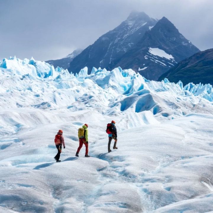 El tema del clima, dice, es parte de la experiencia. “En Calafate puede pasar que tengas los cuatro climas en un solo día. Por eso siempre recomendamos vestirse como una cebolla, de menos a más. Musculosa, remera, ropa térmica, polar, campera de viento y campera de abrigo. Lo mismo abajo, pantalón impermeable y botas de trekking. Se camina mucho”.