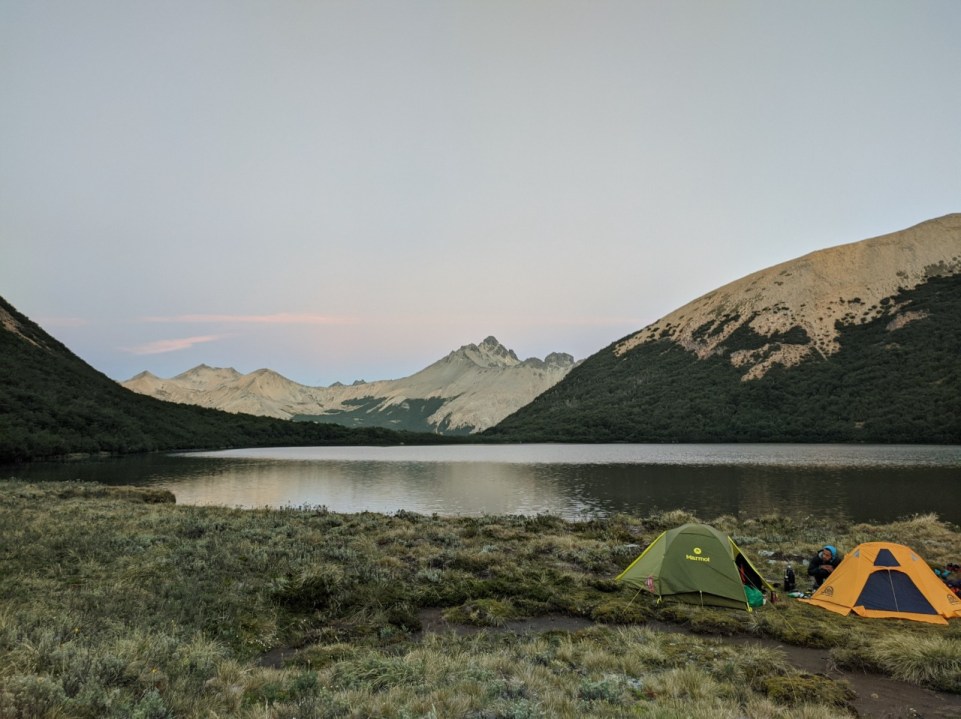 Empezaba así, la subida al cerro CAB, una pendiente muy elevada y con piedra laja suelta, que complicó el ascenso y demoró unas tres horas. La mañana siguió con un faldeo por otro pedrero, hasta llegar al necesitado descanso y punto de inflexión -o no- en el mallín Mate Dulce. Era mediodía, así que entre risas disfrutaron del almuerzo y al terminar, sintieron que podían con lo que venga.
