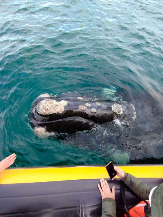 La temporada de avistaje embarcado de ballenas francas y otros mamíferos marinos llegó con sorpresas a Las Grutas.