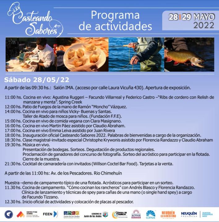 El evento “Casteando Sabores” de Junín de los Andes, pone en la olla, lo mejor de la gastronomía local con la actividad pesquera. Podes pasar un fin de semana aprendiendo más sobre la pesca con mosca y probando sabores de cordillera. Se desarrollará los días 28 y 29 de mayo y tendrá diversas actividades para disfrutar.