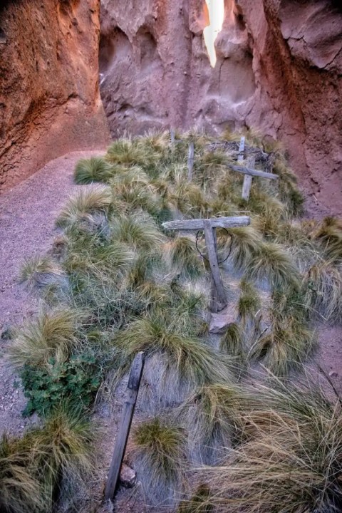 El itinerario incluye sitios emblemáticos de Los Bolillos, como la Casa de Piedra, un conjunto de cuevas naturales, y el Portal del Amor, donde se representa una historia romántica que también forma parte del imaginario local. Otro de los momentos más significativos ocurre en el Cementerio de la Peste, un terreno donde fueron enterradas personas fallecidas durante una epidemia en 1930. Allí, el silencio vuelve a ocupar el centro de la escena.