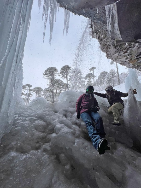 Caviahue: no pudieron esquiar por el temporal, pero mirá la cascada congelada que encontraron