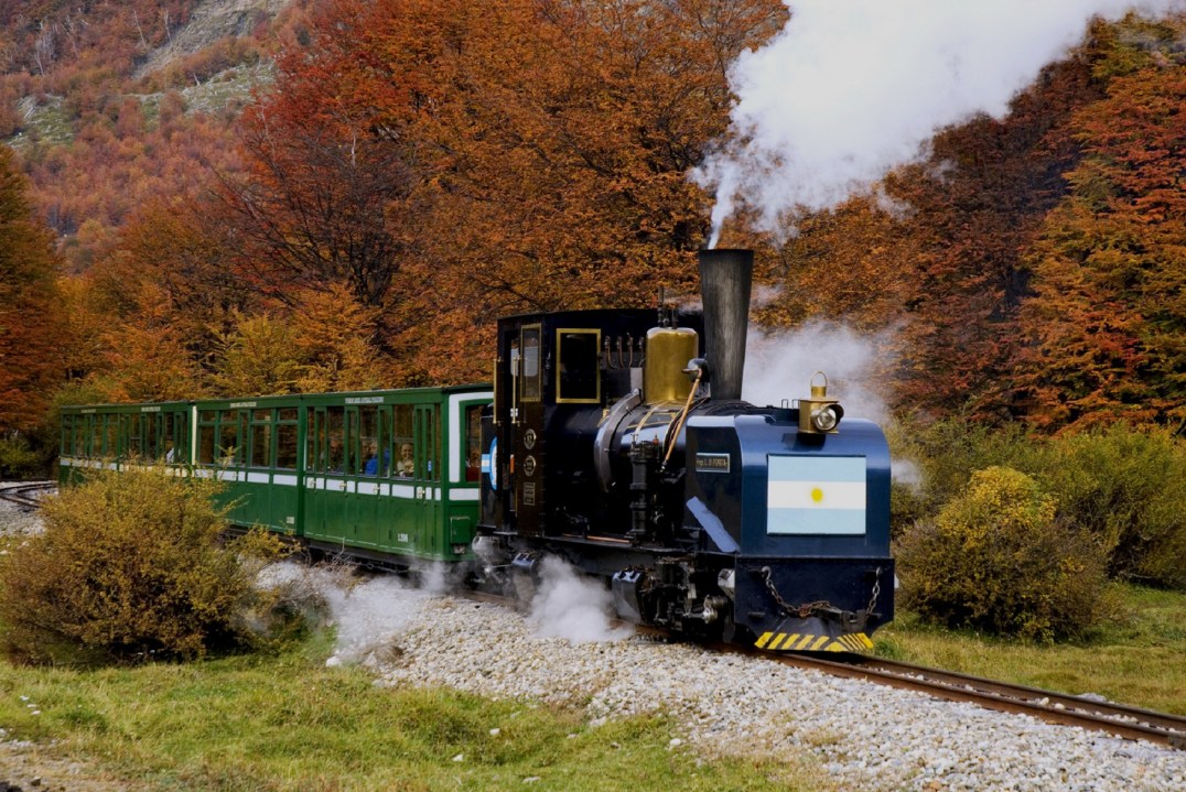 Un viaje en el famoso Tren del Fin del Mundo, hacia la historia y la naturaleza completa el panorama. El trencito, además de recorrer un camino pintoresco, relata la historia de los presos que cumplieron condena en Ushuaia. Antiguamente, el tren partía desde el presidio y llegaba al Monte Susana, donde los reclusos conseguían materiales para construir. Hoy, el recorrido comienza en la Estación del Fin del Mundo, a 8 kilómetros de la ciudad, y en aproximadamente una hora llega a la última estación ubicada cerca de la entrada al Parque Nacional.