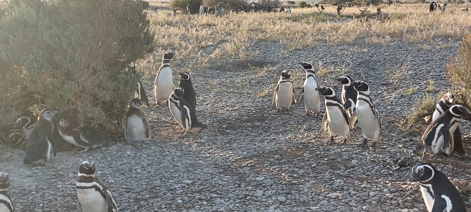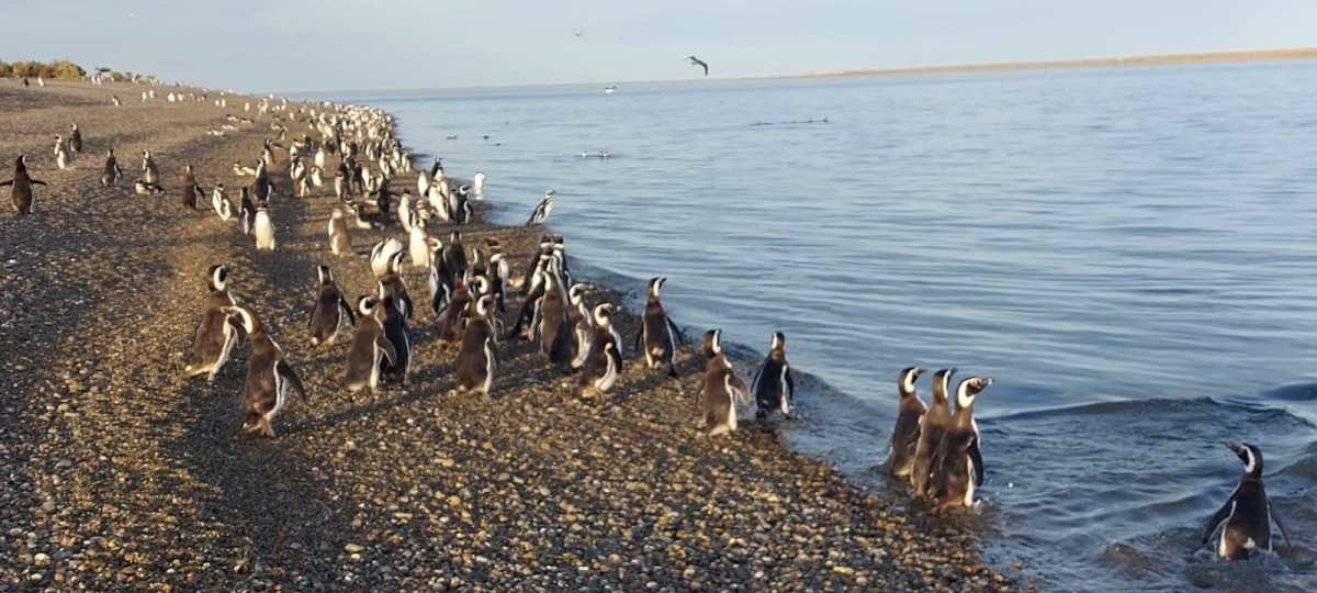 Un lugar único en el mundo se abre paso luego del paseo con toninas y es la gigantesca colonia de pingüinos de Magallanes en la isla Cormorán, más de 130 mil pingüinos que giran la cabeza de lado para saludar. Todos son sociables los pequeños habitantes sureños.