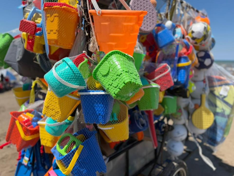 Con el paso de las horas, el descanso se combina con el juego. Para los más chicos —y también para los grandes—, los elementos de playa se vuelven parte del paisaje y ayudan a estirar la jornada hasta la tarde: