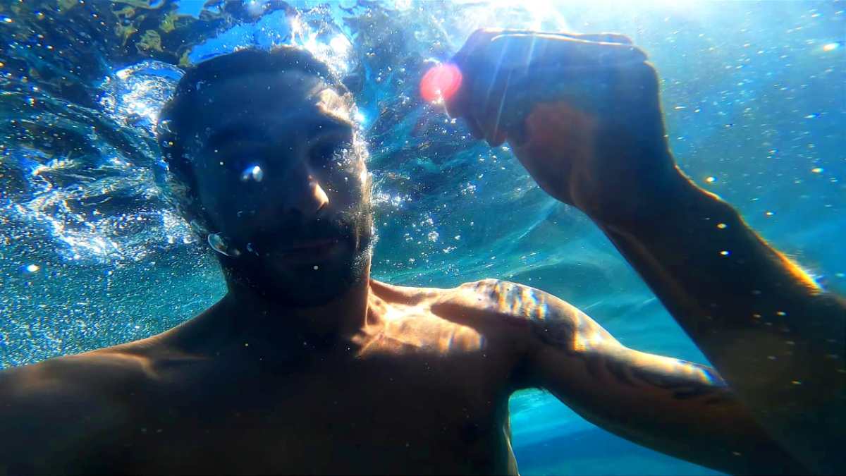 “Claro”, le respondió Nico y ahí estaba su cámara para dejar registrado el chapuzón en esas aguas cristalinas que parecen de cuento. Como siempre que se tira al lago, lo primero fue una bocanada de esa agua dulce y fría. Y entre eso y el sacudón de la temperatura a 18°C el cuerpo necesitó unos segundos para acomodarse.