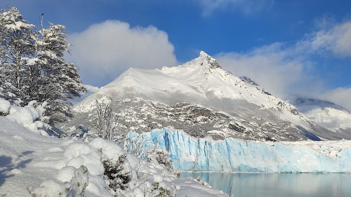 «Ella estaba feliz, caminaba por las pasarelas nevadas y no podía creer el panorama», cuenta Carlos. Los copos blancos también se posaban sobre las ramas de los árboles y detrás, como salido de un sueño, aparecía el glaciar en toda su deslumbrante dimensión, con ese solcito que se asomaba para que todo se viera aún más lindo.