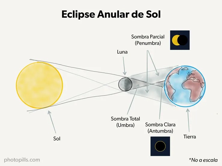 Un eclipse solar anular es un fenómeno astronómico en el que la Luna, al estar lejos de la Tierra, se interpone entre el Sol y nuestro planeta, pero no cubre totalmente al disco solar, dejando visible un anillo de luz brillante o “anillo de fuego”.