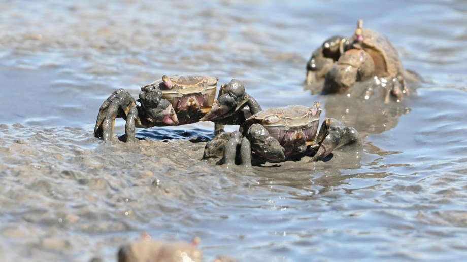 El banquete de los cangrejos: en una playa de la Patagonia lo sorprendió la magia de la naturaleza
