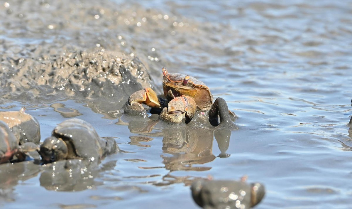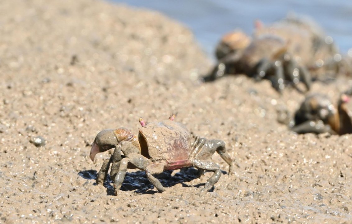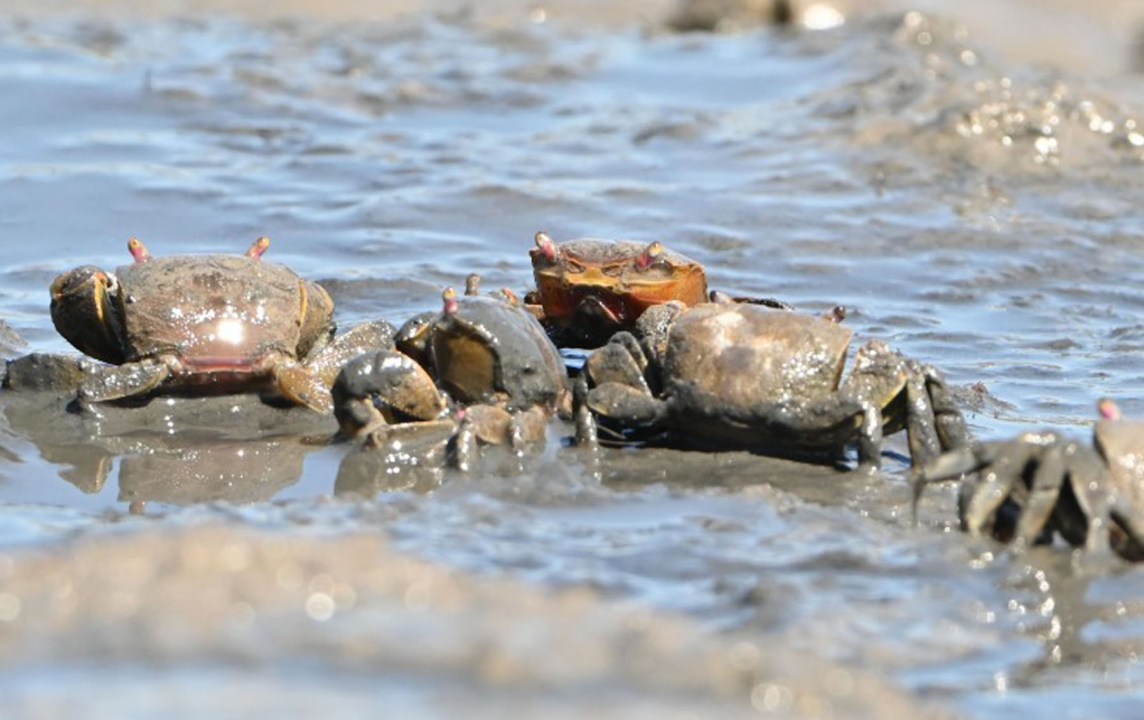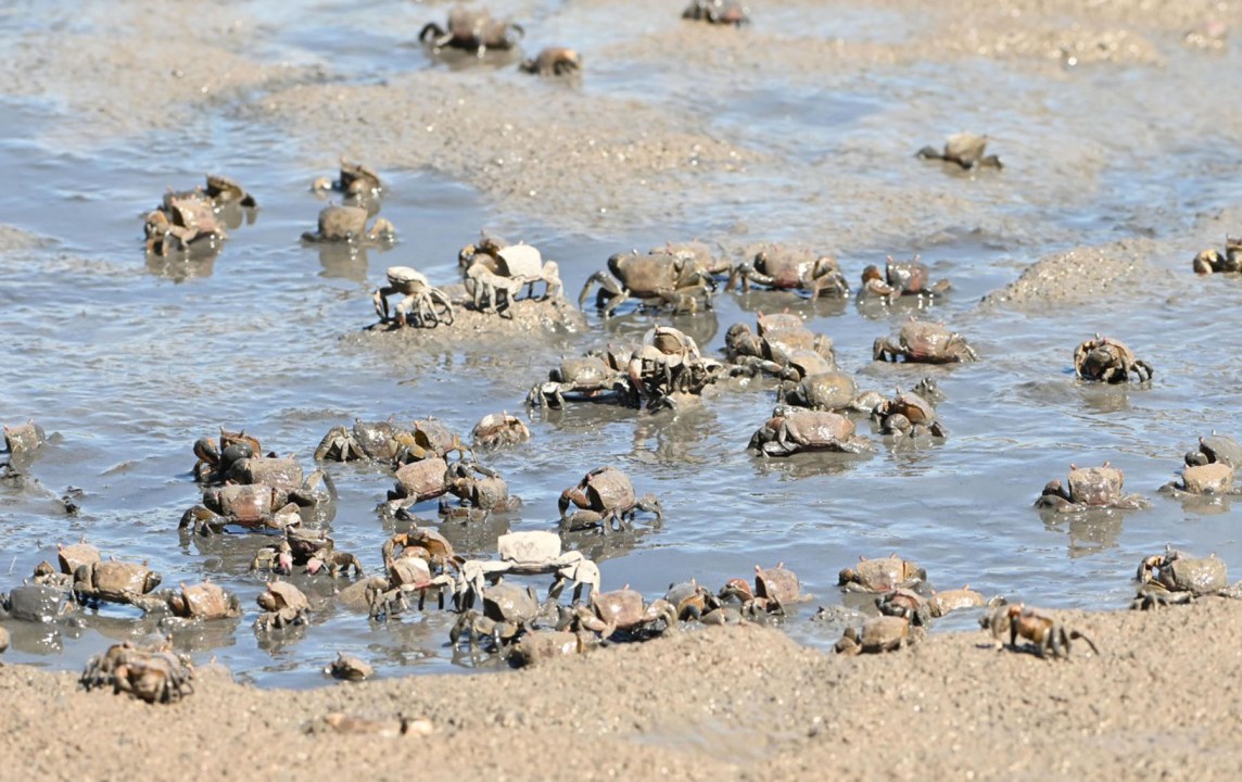 Me detuve un segundo porque algo me llamaba la atención. Cientos de cangrejos habían salido de sus escondites para disfrutar de un banquete improvisado en el barro. Era como si hubieran reservado una mesa en un restaurante, donde la carta ofrecía un menú de delicias marinas.