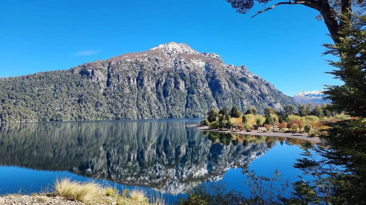 Mis ojos no paraban de sorprenderse, con las vistas hacia el lago, el volcán Lanín que asomaba cada tanto entre la vegetación, las nubes extrañas que se paseaban sobre él, la nieve acumulada en algunos sectores, hacia donde mirara, era belleza.