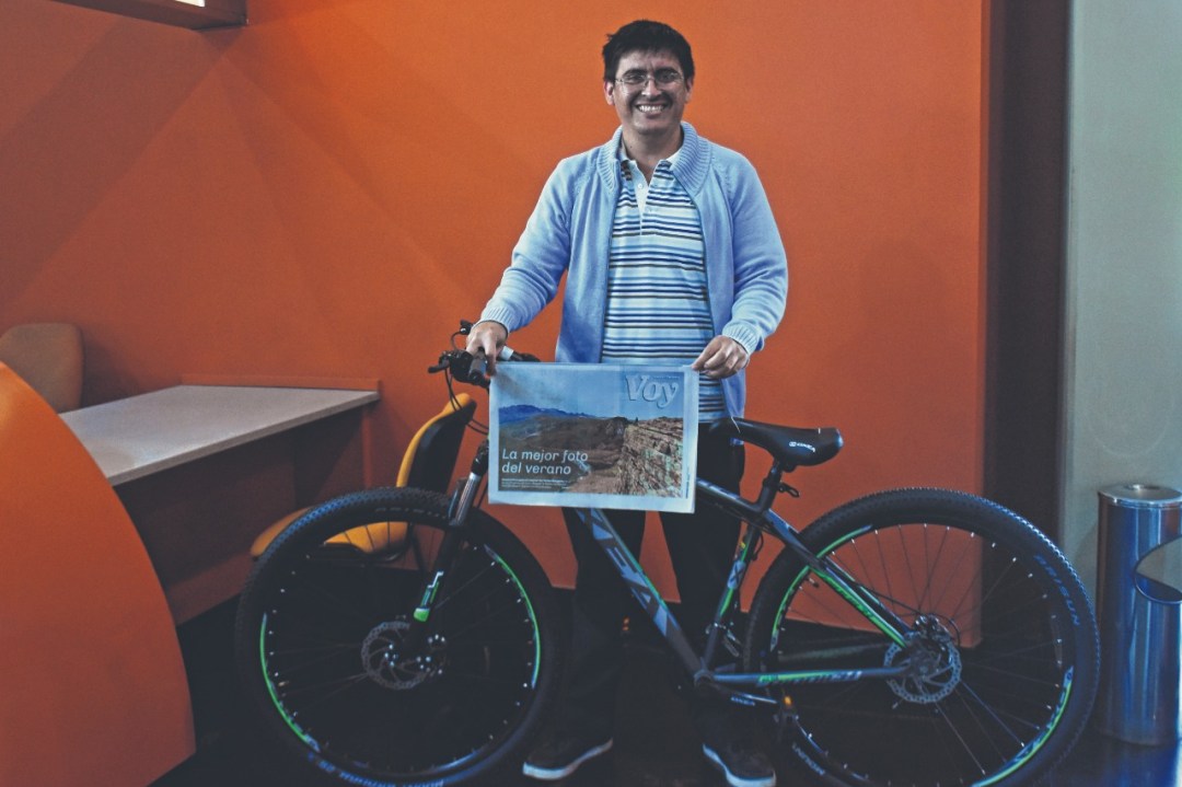 – Emanuel Pérez, el ganador, se llevó una bicicleta OXEA R29 Riddich Aluminio 21vf/disco mecánico y su foto fue tapa del suple voy el domingo pasado.