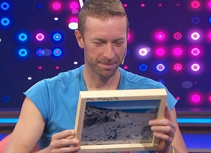 El líder de Coldplay mira la foto del mar argentino, de esa playa de la Patagonia llena de basura. La nieta de Mirtha Legrand, Juana Viale, entrevistó en exclusivo a Chris Martin, y al guitarrista Jonny Buckland y en su programa de El Trece mostró el momento en el que le da al cantante un cuadro de Península Valdés. De un lado, exhibía una ballena y, del otro la playa llena de los cajones de pesca que conviven con los elefantes marinos.