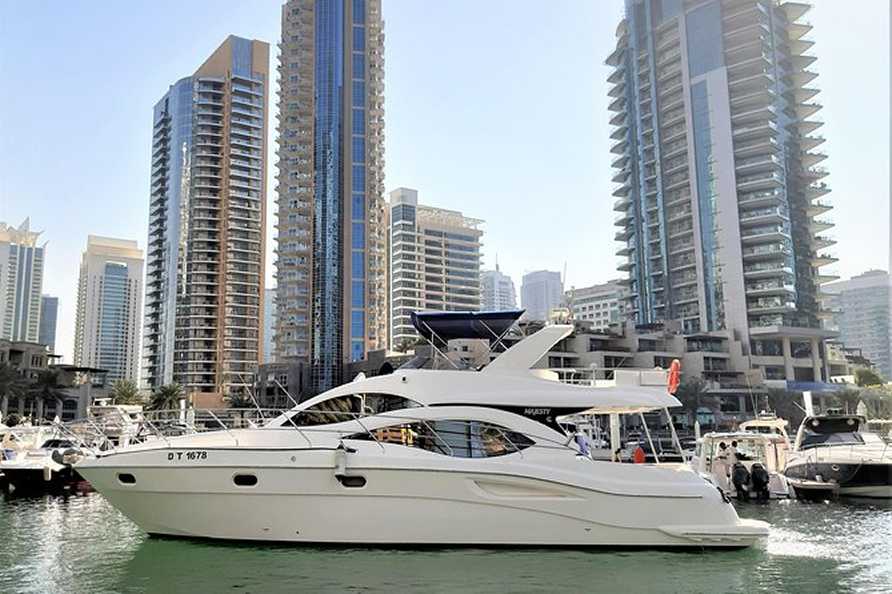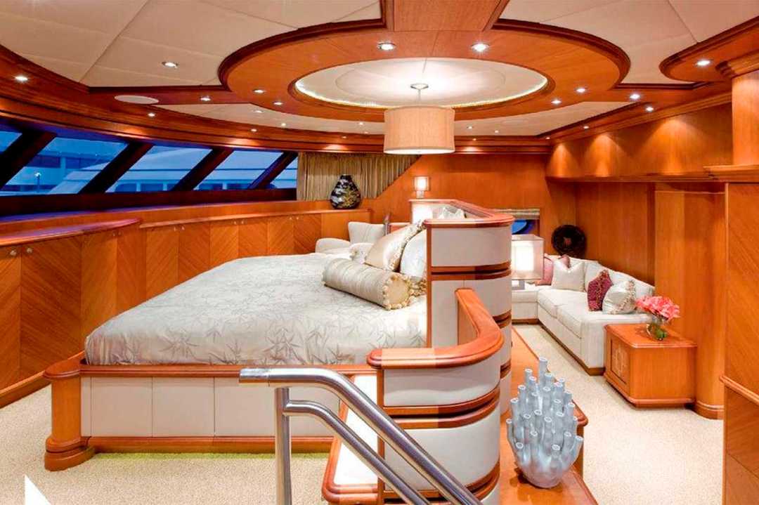 Con el lujo característico de Dubai, el buque de tres plantas y 43 metros de longitud cuenta con una pantalla gigante, un jacuzzi, un bar y un salón con canapés en forma de L sobre una alfombra de leopardo.