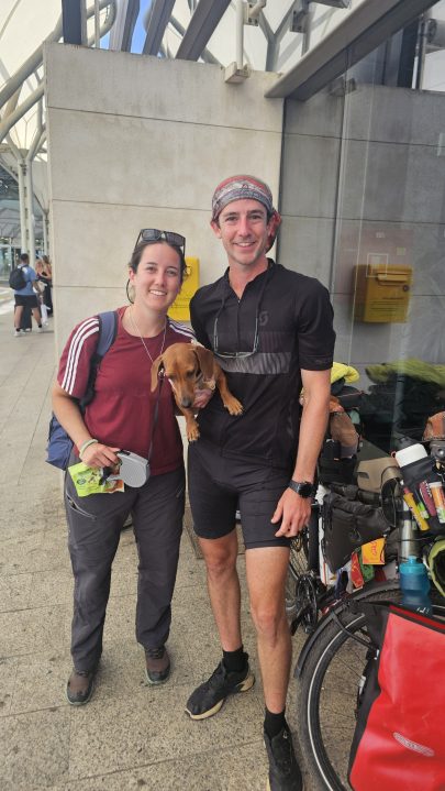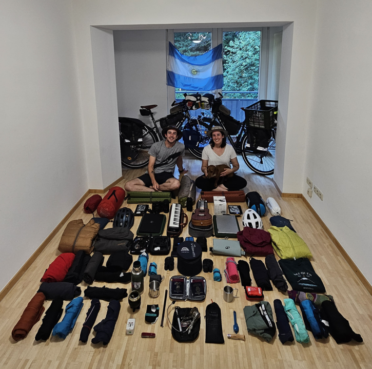 El primer paso fue volar desde Buenos Aires hacia Alemania con Limay, la perra salchicha de su hermana Milagros, que los esperaba en Múnich y le consiguió un empleo en el hospital donde ella trabajaba como nutricionista. El plan era ahorrar para financiar la aventura que preparaban: salir los tres de viaje en bicicleta con destino a Singapur, el punto más cercano y económico para volar desde el sudeste asiático a Australia.