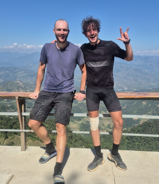 Vietnam. Con su amigo Tim: la alegría de terminar el circuito Ha Giang Loop, uno de los más famosos del mundo: «Fue el recorrido mas exigente y visualmente más impactante que hice».