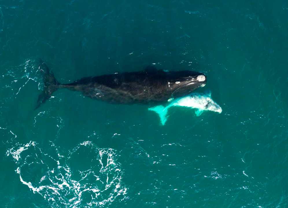 Al detectarlo, Maxi primero sonrió y después puso a volar el drone, mejor aprovechas cada segundo, porque la dupla más tierna iba rumbo a Puerto Madryn, la cría siempre cerca, la maravillosa aventura de la vida en el océano a apenas unos metros. Aquí vienen las francas australes cada año, a reproducirse y a parir.