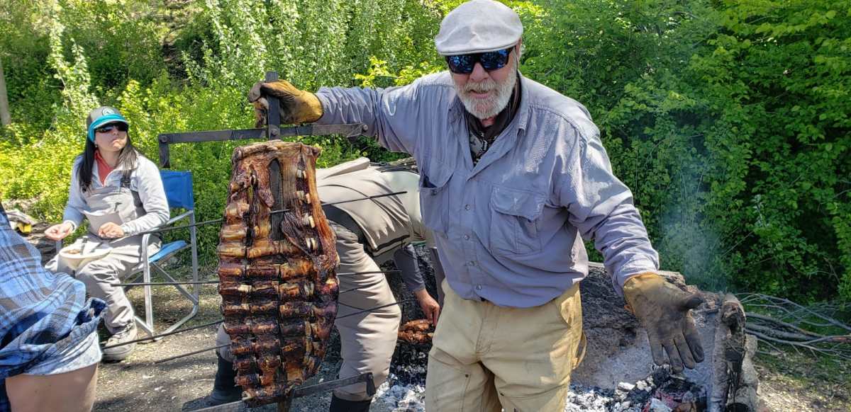 Las truchas no picaron en la boca del Chimehuín, pero nadie olvidará el asado del Tano