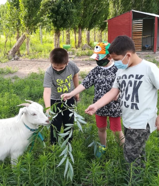 En la granja ofrecen una visita guiada donde los niños pueden alimentar a los animales y aves y participar de algunas actividades rurales.