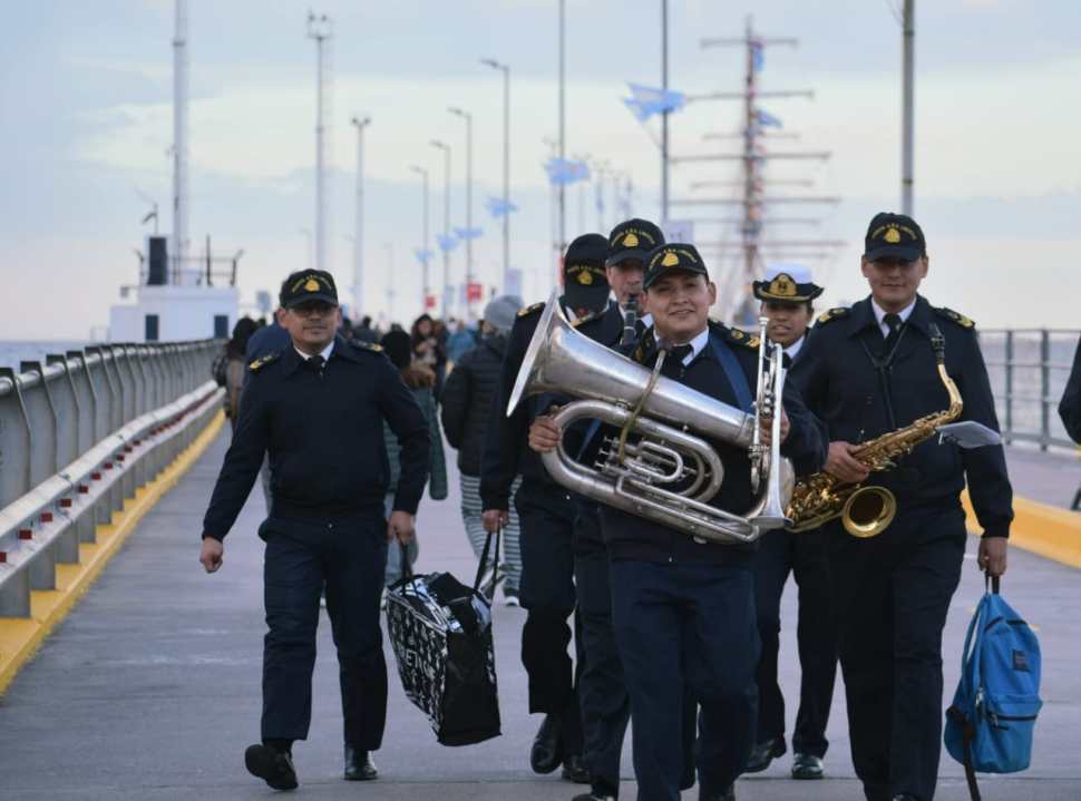 Entonces, enumera cada detalle que lo asombró en estos días: los marineros en los mástiles y los palos, los músicos de la banda, cómo lo atendieron cuando subió. Las salvas que suenan como bocinazos que se pierden en el mar, el avión que pasaba tan cerca para dale la bienvenida, esos largos 104 metros de eslora, la gente caminando en el muelle y la fragata de fondo.
