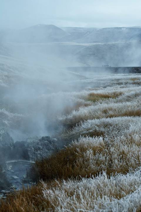 Fue entonces que esa gélida mañana observó los pastizales congelados por la helada y detrás el arroyo que corría levantando una oleada de vapor. «Hacían unos 5 grados bajo cero y el arroyo pasaba por el medio hirviendo. Son esas escenas impresionantes que tenemos en nuestro norte neuquino, me encontré con eso y paré a hacer unas fotos», relata Martín.