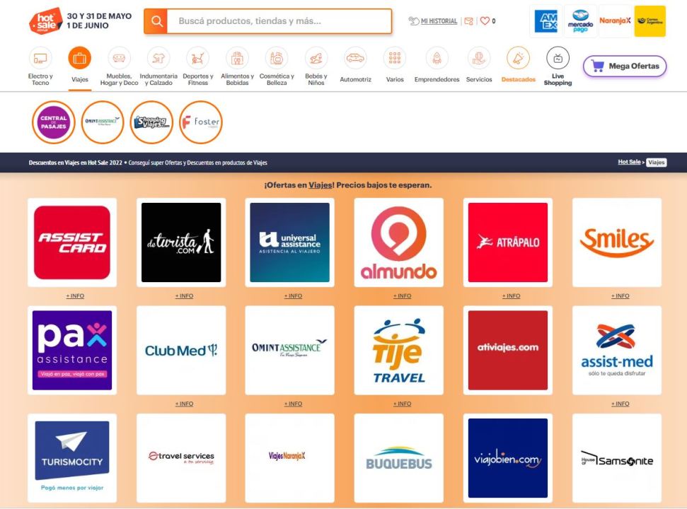 En la página, hay que ingresar a Viajes, en el extremo superior, aparece segunda entre las categorías. Al entrar, verás todas las empresas participantes, y debajo, está la pestaña que dice Mega Ofertas en Viajes Super Descuentos y Promociones en Viajes. Allí, aparecen los descuentos especiales.