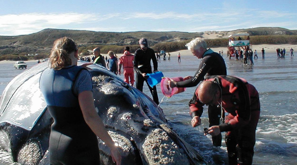 El 25 de septiembre se celebra el día nacional de la ballena Franca Austral, y para conocer el orígen hay que viajar al año 2002, cuando un juvenil se enredó en las cadenas del fondeo de un catamarán de avistaje, en la bahía de Puerto Pirámides (Chubut). Los guías balleneros y buzos lo intentaron desenredar pero no podían acceder a las cadenas bajo el agua, los llevó a tomar la decisión de vararla desafiando los peligros que representaba esta maniobra.